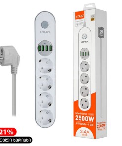 مطول كهربائي 2 متر 5 مداخل