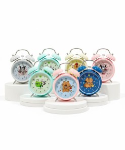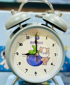 ساعة منبه كرتونية لطيفة ومبتكرة على شكل جرس مزدوج ربعي (أزرق)
