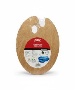 التصميم: تتميز بشكل بيضاوي أو كلوي تقليدي مع فتحة للإبهام لسهولة الإمساك أثناء الرسم.