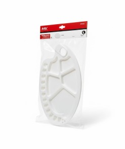 التصميم: عادةً ما يكون على شكل كلية أو بيضاوي مع تجاويف بأحجام مختلفة لمزج الألوان المائية أو الزيتية أو الأكريليك.