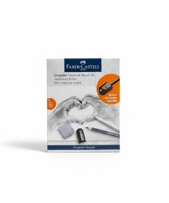 تتضمن المجموعة خمسة أقلام فحم بدرجات صلابة مختلفة (ناعم جدًا، ناعم جدًا، ناعم، متوسط، وصلب).