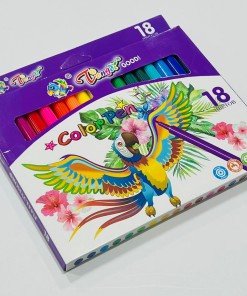 طيور نابضة بالحياة على العبوة. الأقلام ذات أساس مائي ومناسبة لمشاريع الأطفال الفنية.