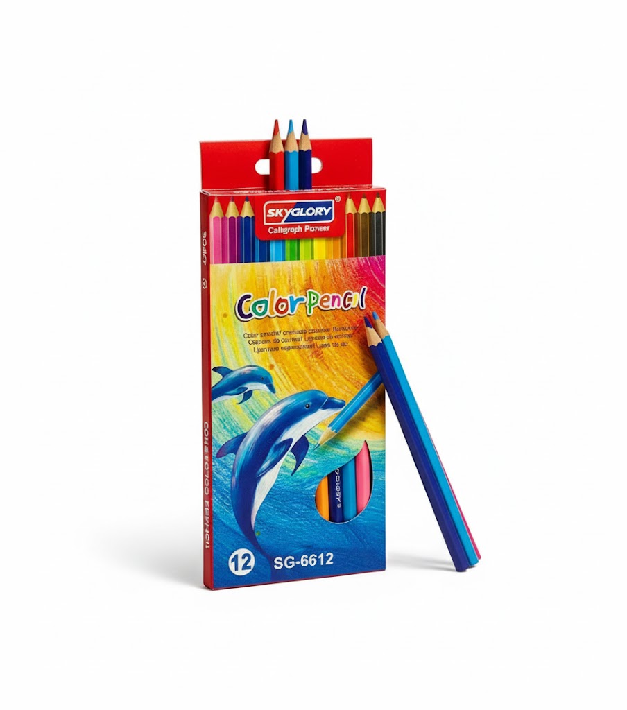 أقلام تلوين من سكاي غلوري، تضم 12 لونًا مختلفًا مناسبة للرسم والتلوين.