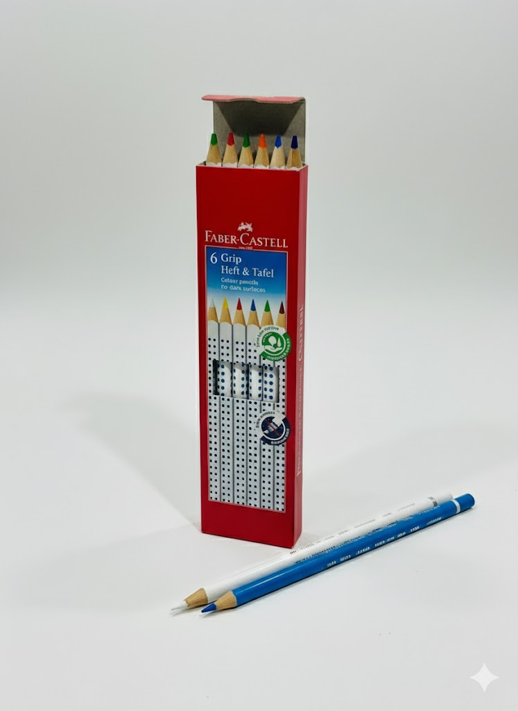 الأقلام قابلة للذوبان في الماء، ومصممة برؤوس رصاص عالية الصبغة ومقاومة للكسر.