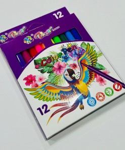 طيور نابضة بالحياة على العبوة. الأقلام ذات أساس مائي ومناسبة لمشاريع الأطفال الفنية.