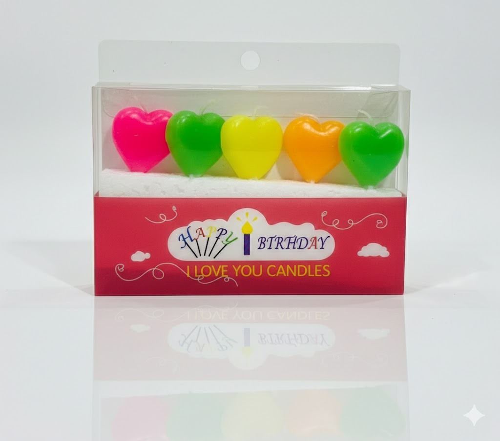 شموع صغيرة متعددة الألوان على شكل قلوب – عبوة من 5 قطع – نيكست بارتي