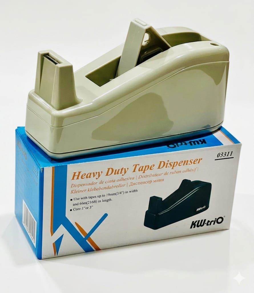 قاعدة ثقيلة: يتميز بقاعدة داخلية ثقيلة الوزن ومبطنة مانعة للانزلاق، مما يسمح بتوزيع الشريط بثبات بيد واحدة دون انزلاق الجهاز على سطح المكتب.