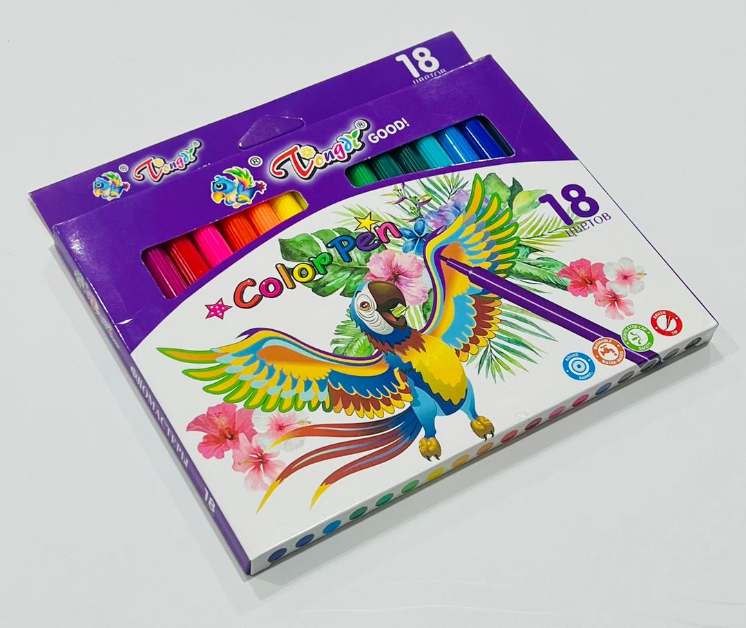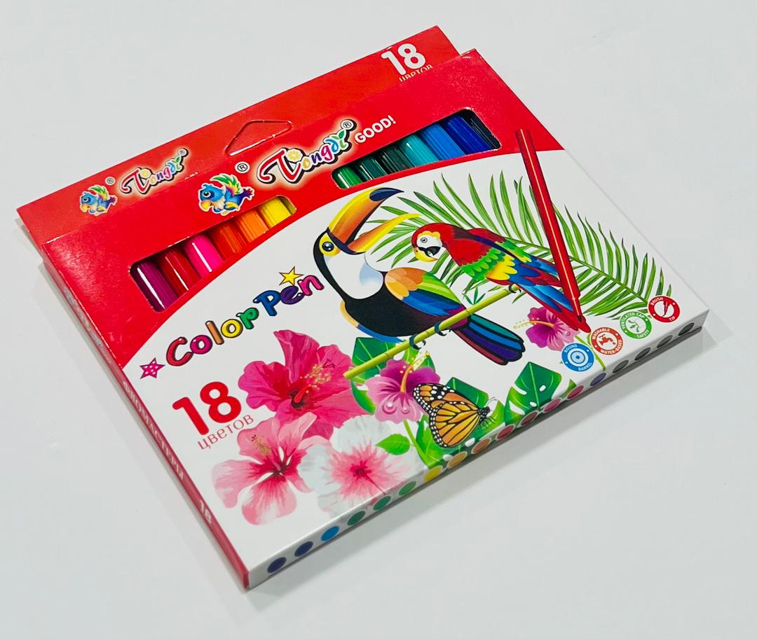 طيور نابضة بالحياة على العبوة. الأقلام ذات أساس مائي ومناسبة لمشاريع الأطفال الفنية.