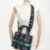 It features a reversible and removable embroidered shoulder strap allowing to be worn over the shoulder or in the hand.